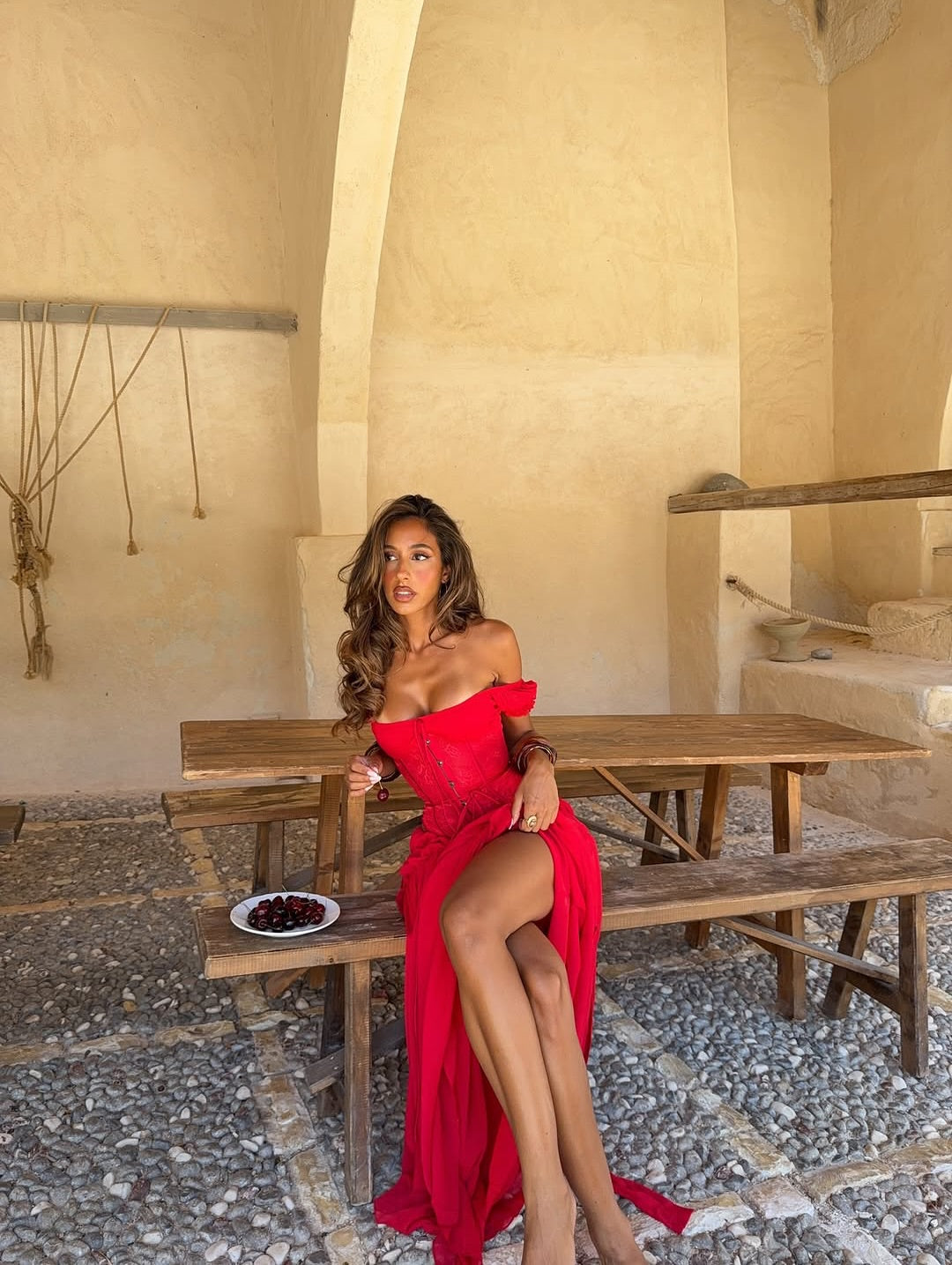 I’m the Lubela Corset from Outcast – structured, romantic and designed to flatter. I feature a hook-and-eye front, lace-up back for an adjustable fit, ruched lace-trimmed cups, and soft off-shoulder puff sleeves.